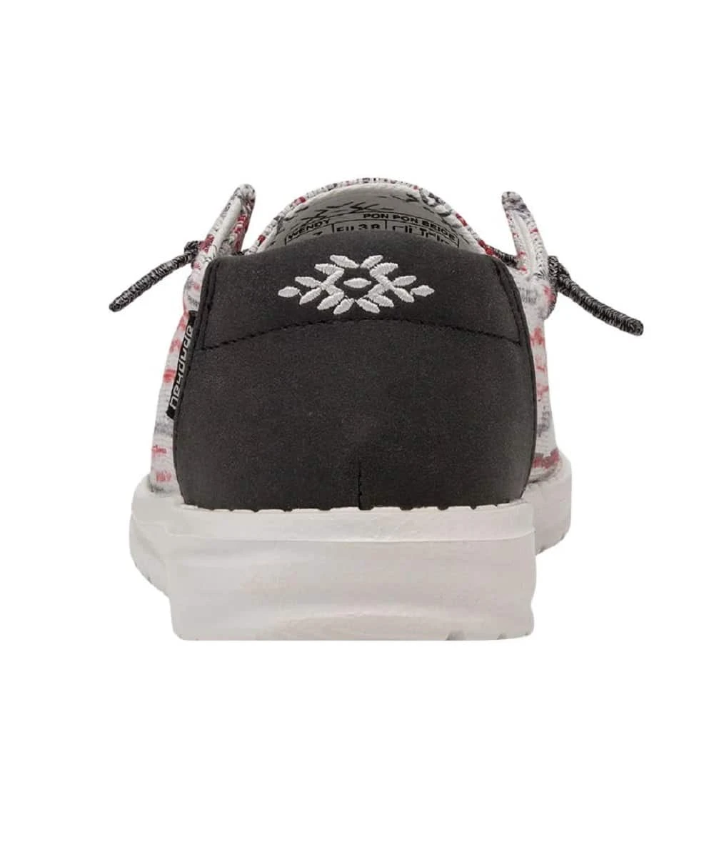Polyester-Blend Upper With Textural Striping; Color: Beige With Red/Charcoal Grey Stripes; Contrasting Charcoal Grey Leather Heel; Novelty Pom-Pom Detail; Contrast Cotton Lining; Ultralight Outsole; Removable Leather Lined Insole; Easy-On System With Elastic Laces; Flex & Fold Technology; Easy to Wash; Air Dry; Style #121410607